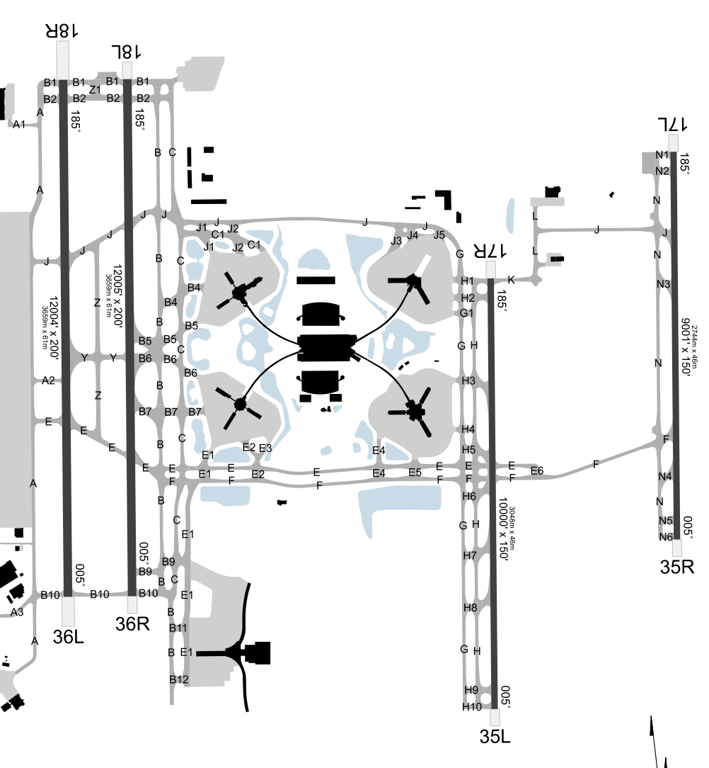 You can see in the image above that all four runways have the same heading, but the two parallel runways on the right have different numbers that don't align with their actual heading.